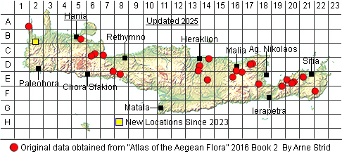 Balkans Peninsula. and Crete. Scattered across Crete, not too common.
