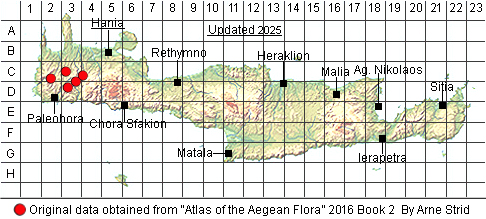 Denmark and N. Ukraine. On Crete confined to the westen half. Rare.